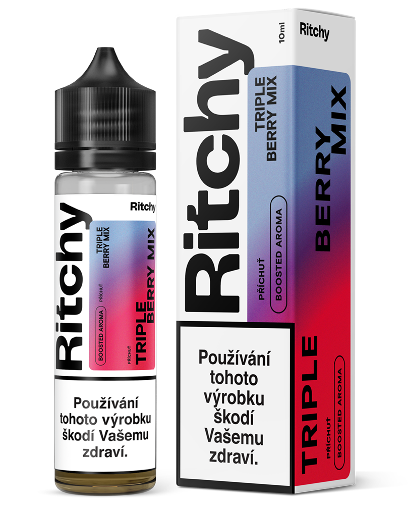 Zažijte rozkošnou explozi šťavnatých borůvek, zralých malin a sladkých jahod v této osvěžující směsi bobulových lahůdek. Představujeme vám příchutě Ritchy S&V od prestižní evropské společnosti Liqua, které zajistí intenzivnější aroma a skutečně prvotřídní zážitek při každém potáhnutí. Příchutě Ritchy jsou baleny ve velké 60ml lahvičce, obsahující 10ml koncentrované příchutě. Díky systému shake & vape je příprava snadná – stačí dolít bázi a ihned se ponořit do lahodného zážitku bez čekání na dozrávání.